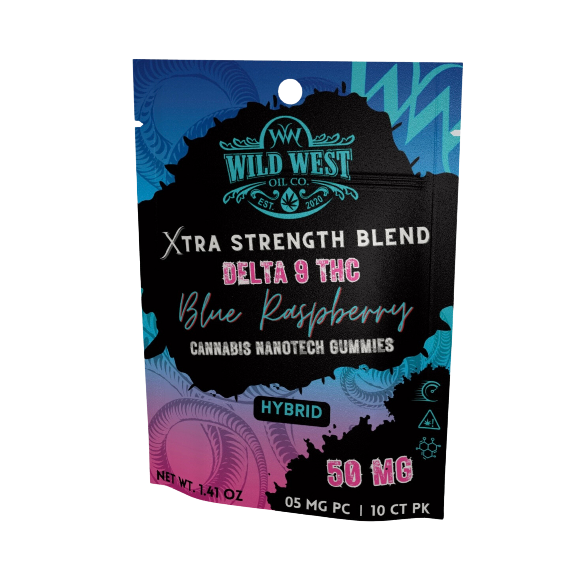Our Xtra Strength Delta 9 Cannabis Blend is a handcrafted fast acting gummy line that is infused with the finest Wild West THC distillate oil. Wild West is mastering the art of the entourage effect and curating multi-cannabinoid blends for the optimal experience to satisfy our loyal customers. We use a highly advanced Nano- Technology that creates a faster onset and stronger effects within 30 minutes. Enjoy the best tasting medicated gummies in the Midwest! 50mg pack, 10pc, 5mg each pc.